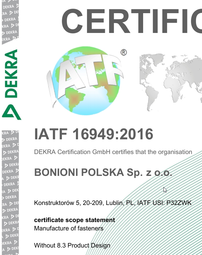 Bonioni dispose de deux sites de production en France et en Pologne, regroupant ainsi tous les métiers de la frappe à froid et de la production de pièces sur plan ou visserie spéciale et visserie technique, visserie en acier vert, mais aussi les technologies associées : usinage, surmoulage, assemblage…