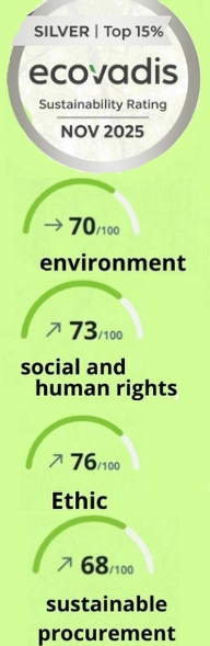 Wir sind stolz darauf, bekannt geben zu dürfen, dass BONIONI mit einer Punktzahl von 72/100 mit der EcoVadis-Silbermedaille 2025 ausgezeichnet wurde, wodurch unser Unternehmen zu den besten 15 % weltweit zählt.